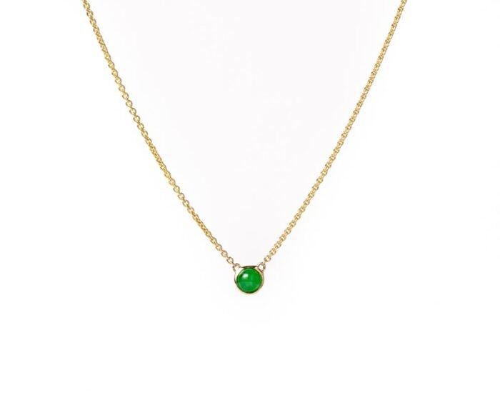 The solitaire Min necklace is eyecatching and ideal for stacking. The intense green round jade glows with magnificent translucency.